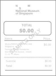 - To protect our visitors and ensure a fair experience for all, unauthorised commercial activities, including but not limited to the sale, distribution, or display of unauthorized goods, services, and promotional materials, are strictly prohibited within the venue and surrounding areas. This includes ticket touting, scalping, and resale of merchandise, which are strictly prohibited within the venue and the designated exterior forecourt areas under the operational control of the National Museum of Singapore. We reserve the right to refuse to provide services and products to such consumers and to immediately remove offenders from the premises and involve relevant local authorities for illegal commercial activities. We reserve the right to ask offenders to leave the premises.
