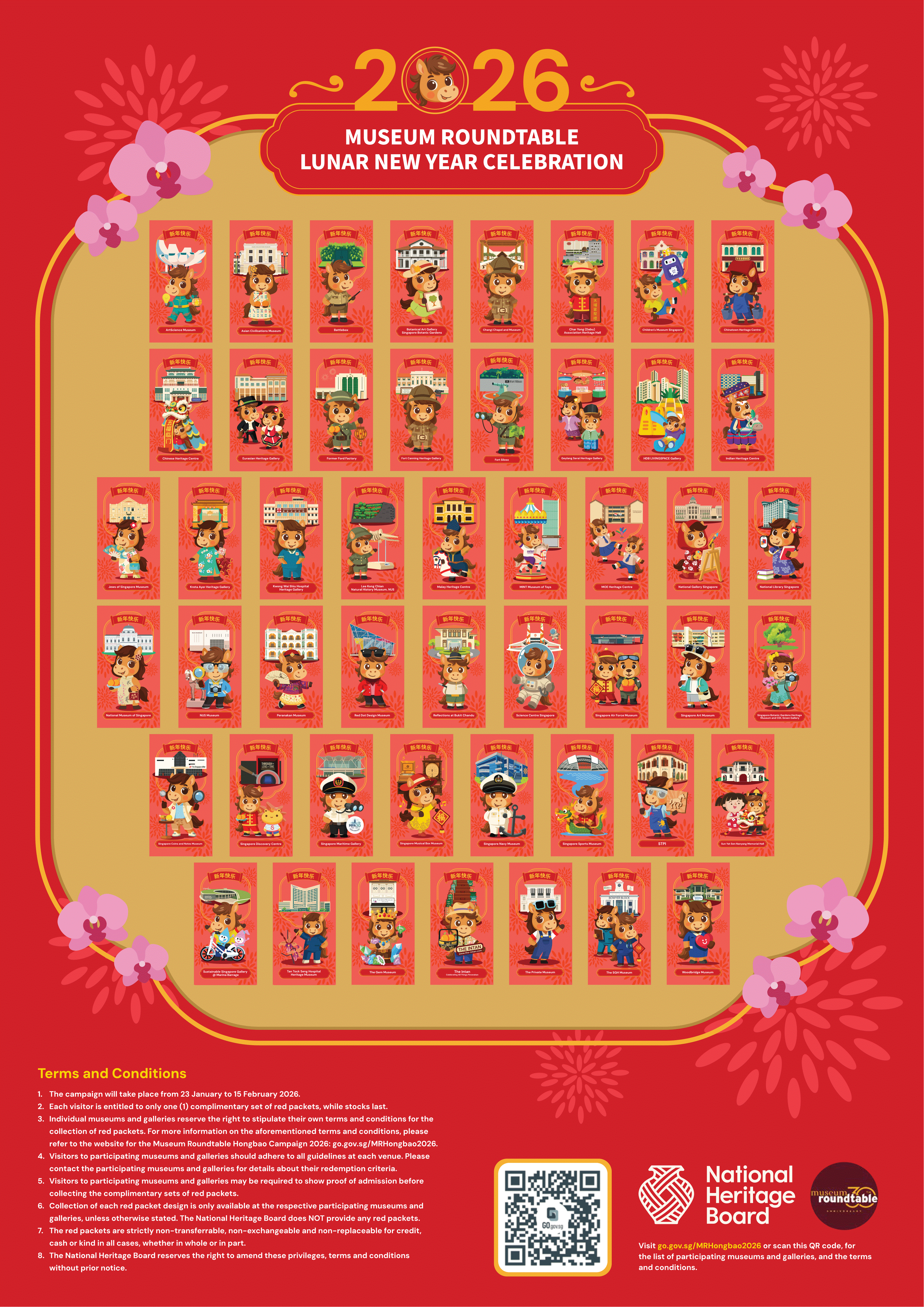 Each visitor will receive one (1) set of red packets upon completing their visit of the museum, while stocks last.
